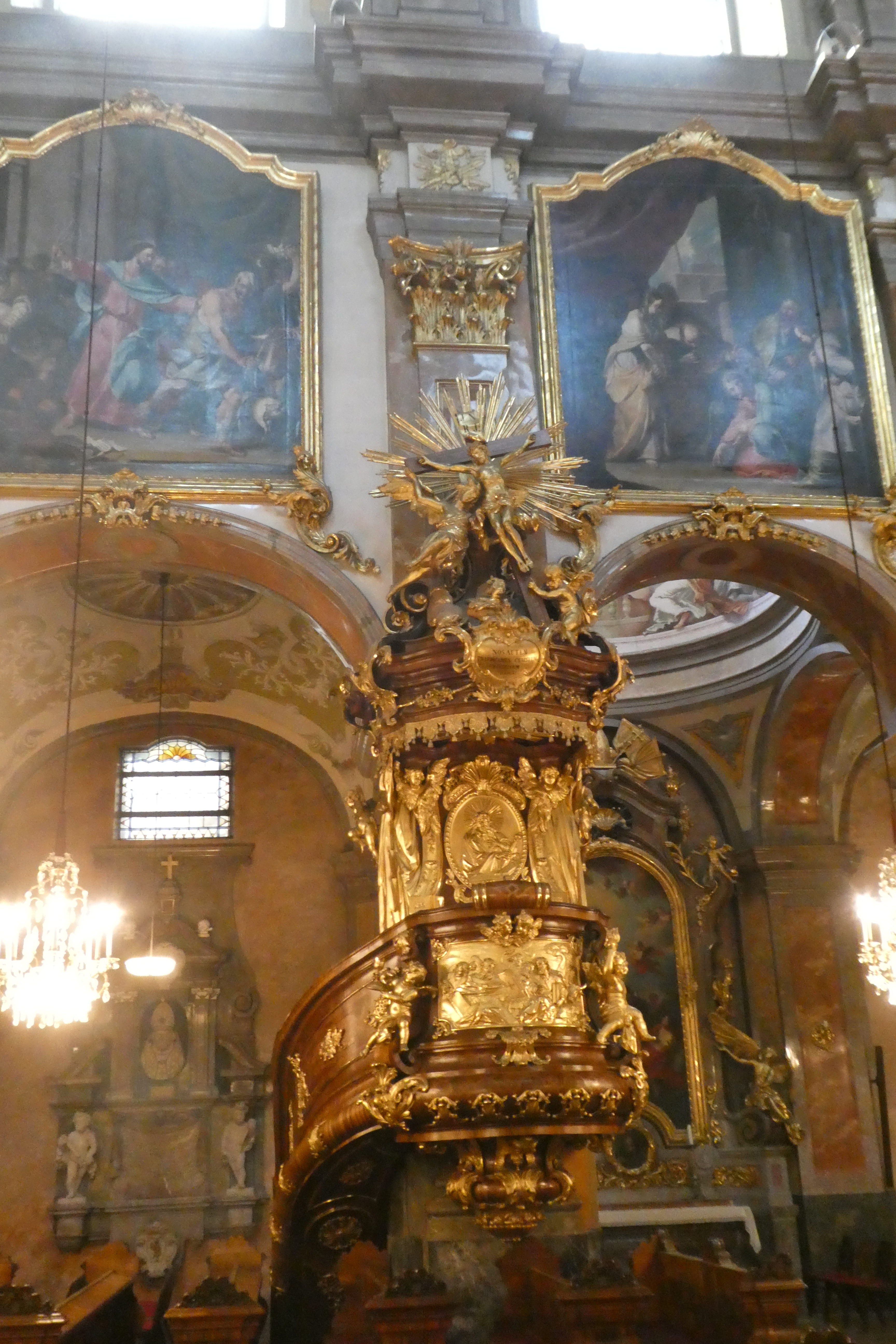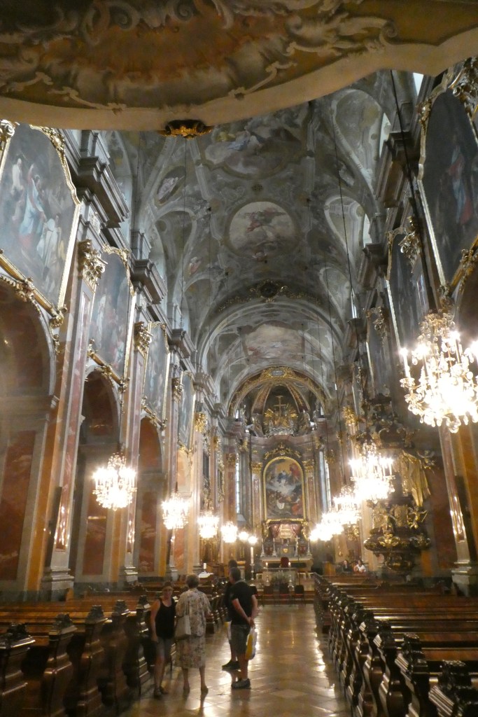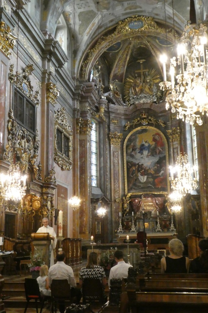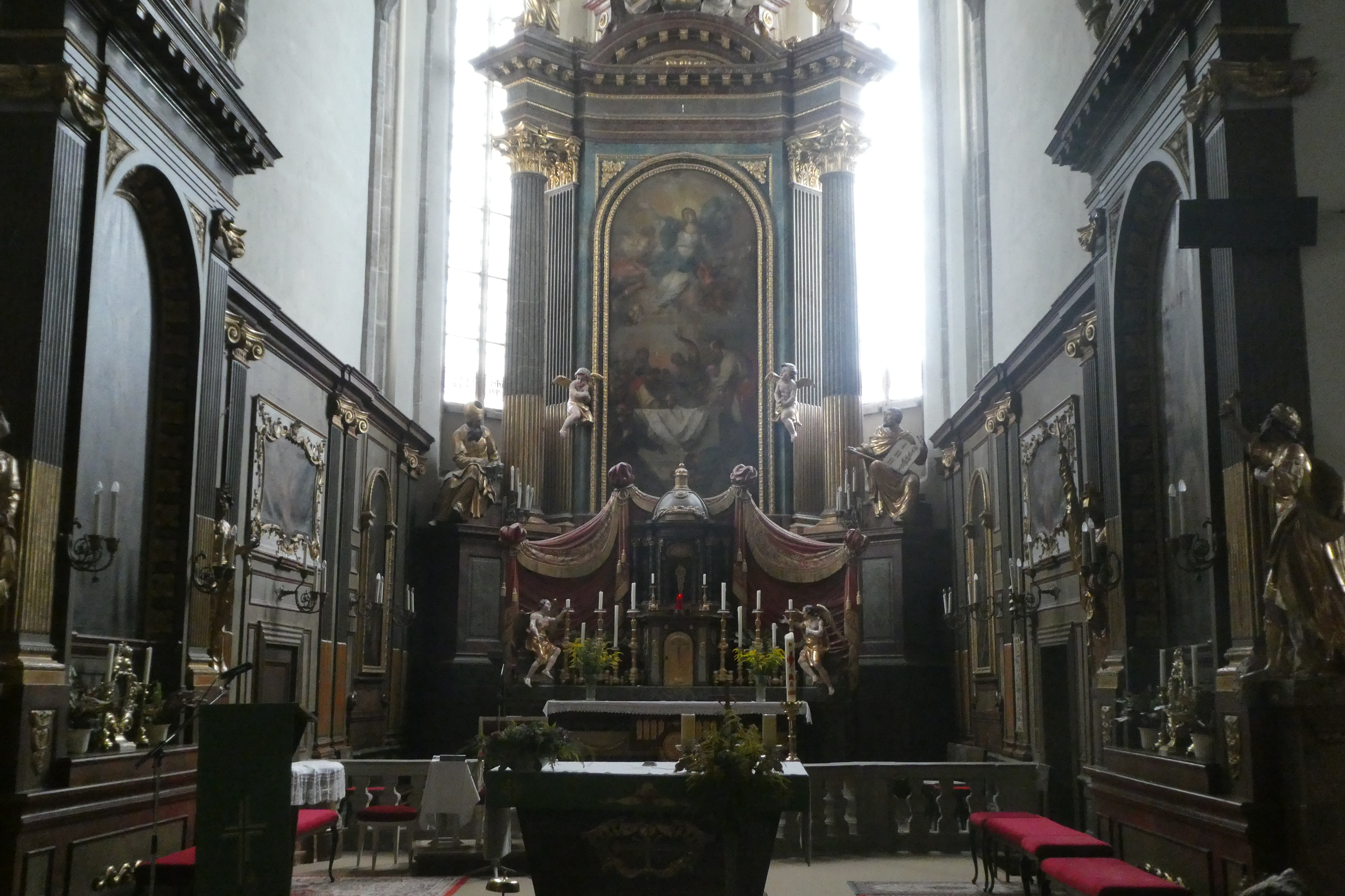 It goes back to possibly the 11th century (the level of the German courses from three different languages I’ve finished on Duolingo didn’t give me enough German to understand this decisively) with some gothic elements and late-romantic elements and an altar picture donated by Queen Marie Therese.