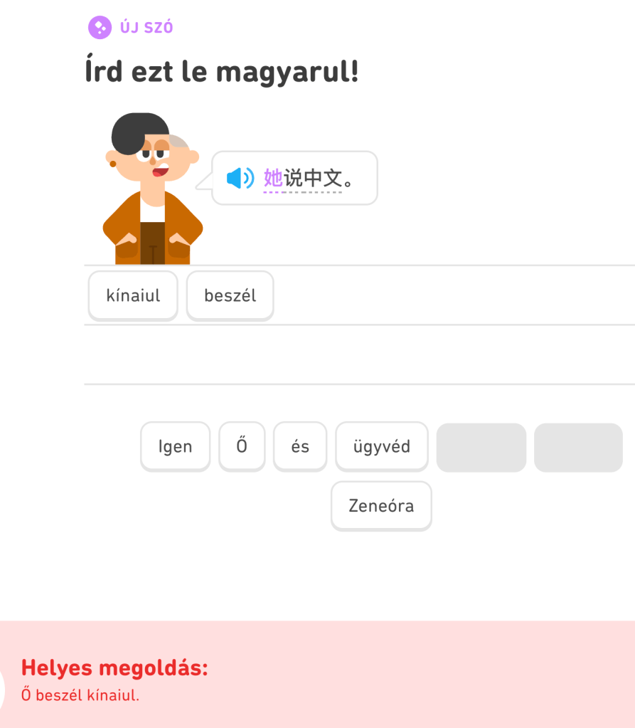 So far so good, you could say, and because of the original bad quality of some material has also stayed the same, they stick with their – perhaps secret – policy of not responding to any criticism or request for improvement, except that they were graciously able to close down my original profile as requested. Now, finally, I have that particular final news. For the small bunch of fellow Hungarians who are wicked enough to dare to take up Chinese, the bad news is that they should re-learn their mother tongue. Or otherwise we could better understand now why Chinese people in Hungary speak our language often so badly. Here is what kind of language has appeared quite early on on the course, together with the correct solutions: